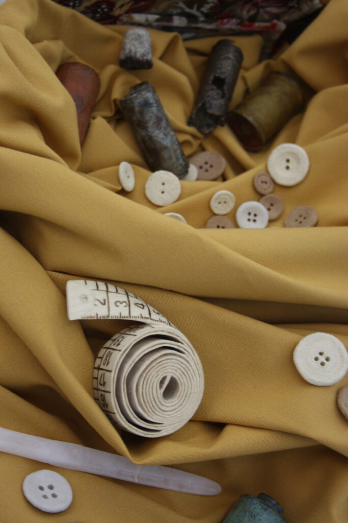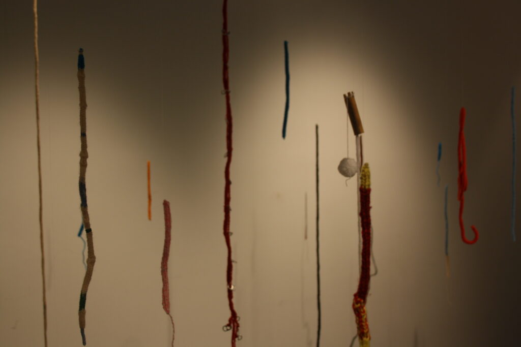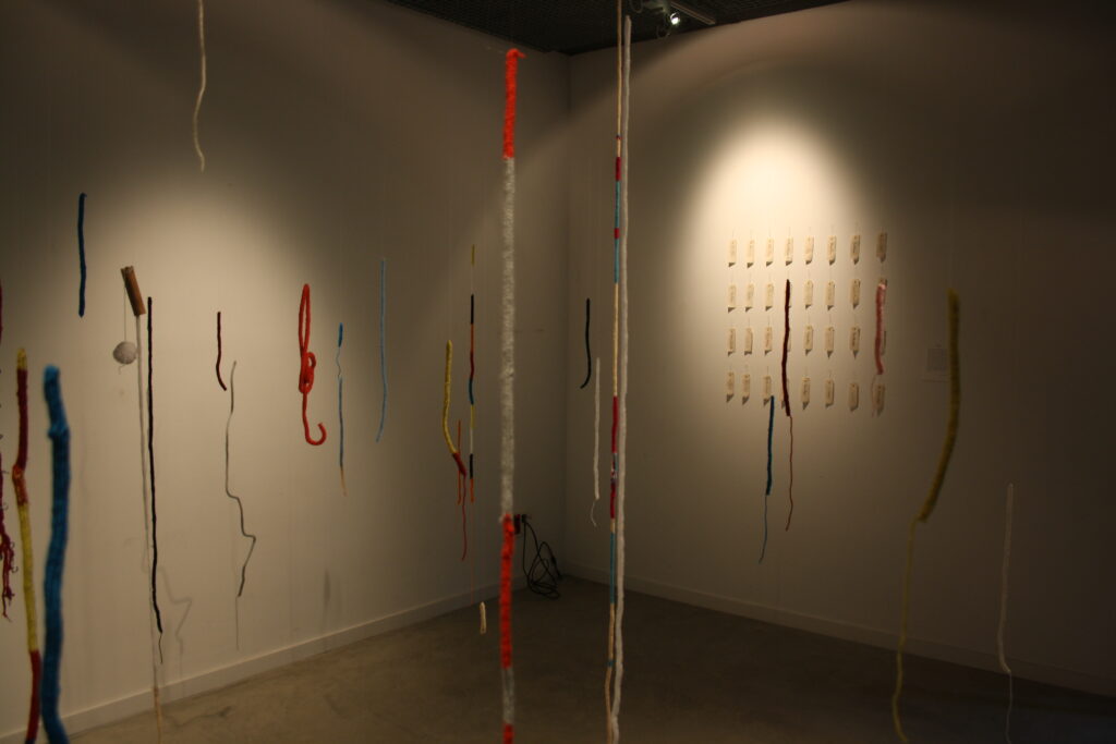 Raquel Sesma Ramón. (2014). Hilvanando la Historia del Arte. Instalación. Cintas de raso de tres milímetros. Medidas variables. Barcelona.